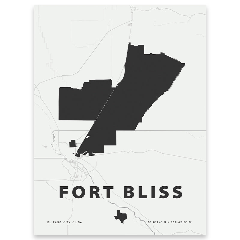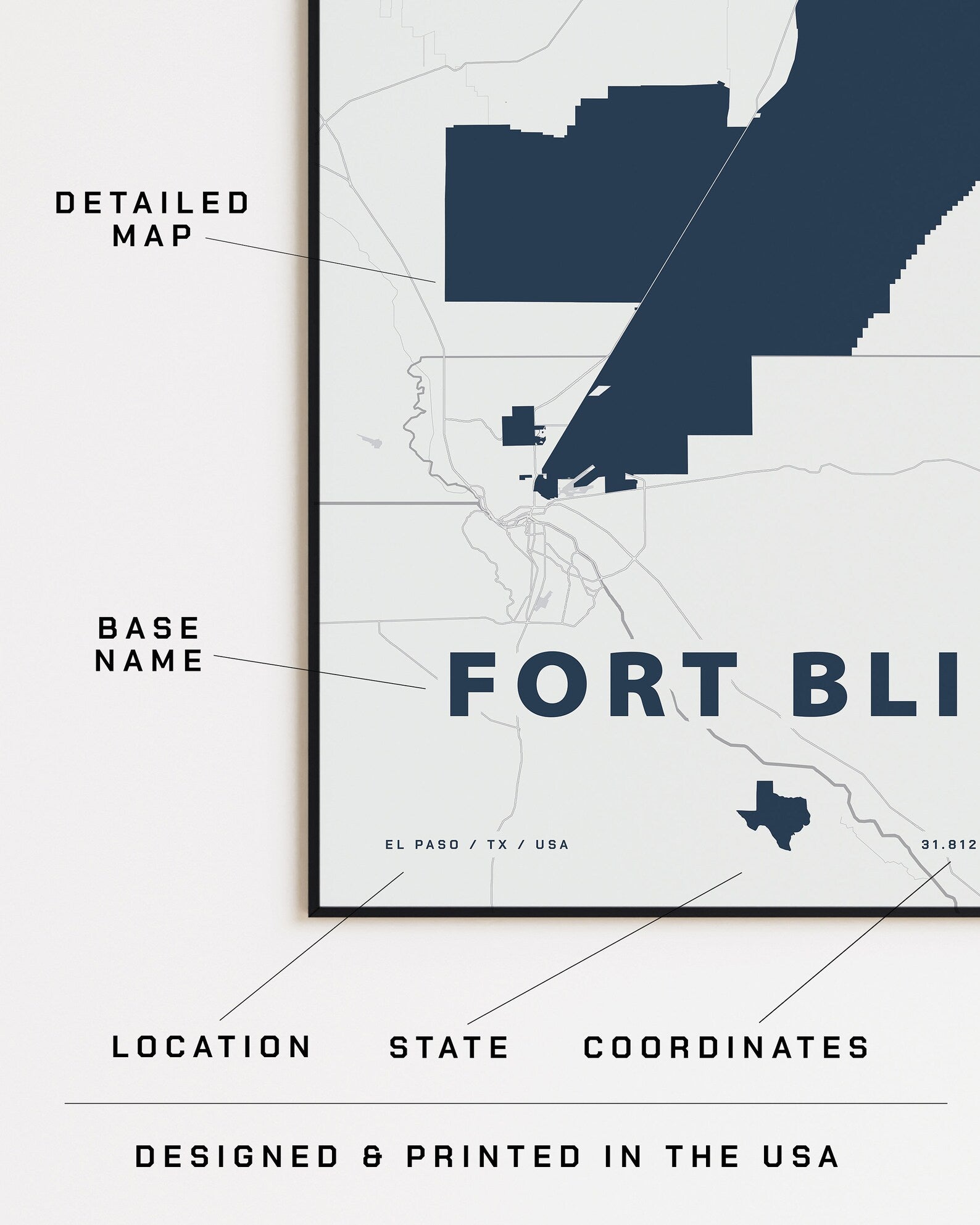 Created by a military wife to commemorate each military family's journey, this map of Fort Bliss is a meaningful way to add art to your home. Collect every place you've been stationed for an effortless gallery wall that tells your story.