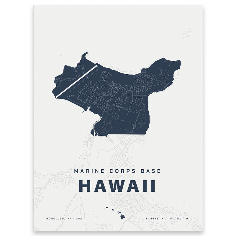 Created by a military wife to commemorate each military family's journey, this map of Marine Corps Base Hawaii is a meaningful way to add art to your home. Collect every place you've been stationed for an effortless gallery wall that tells your story.