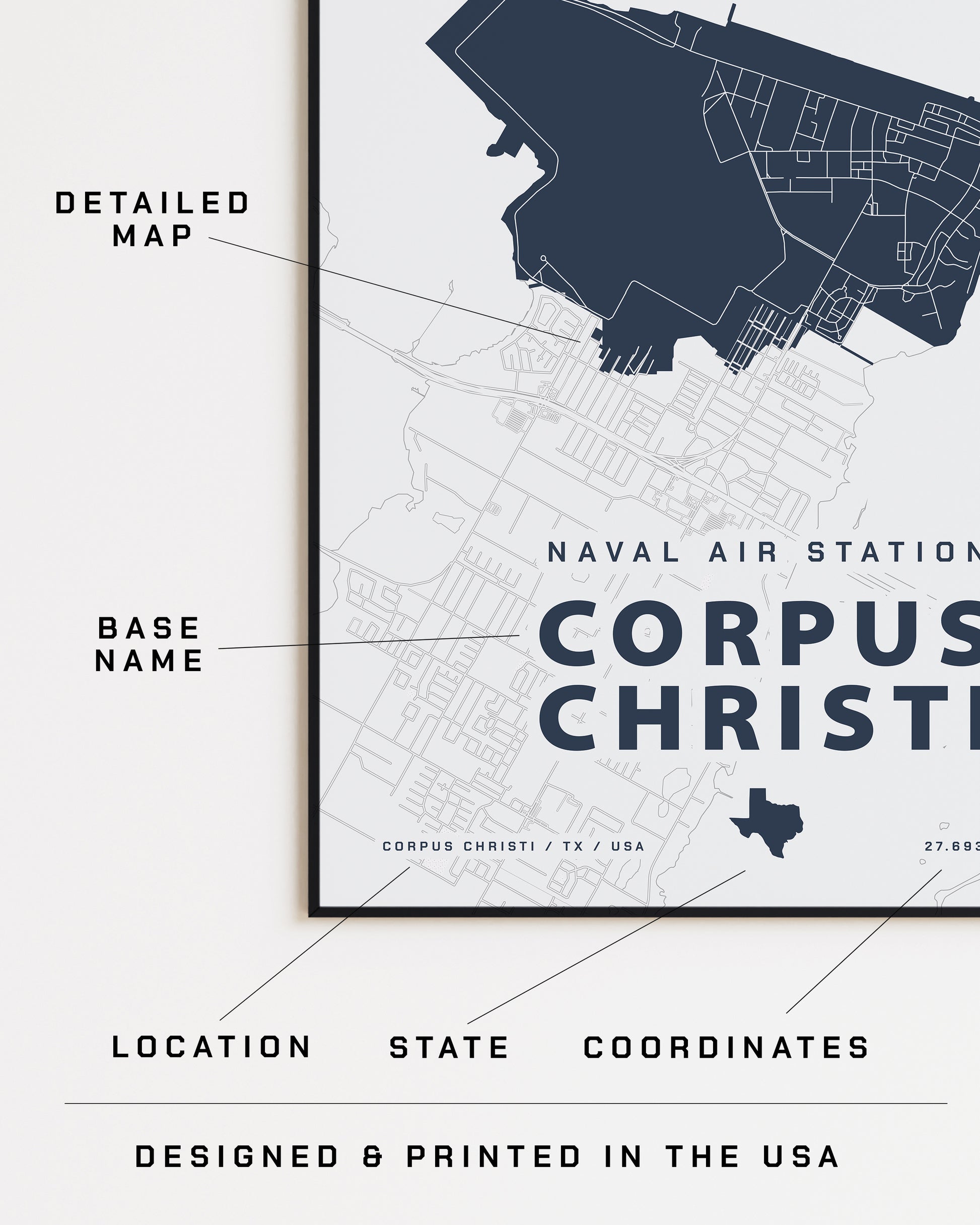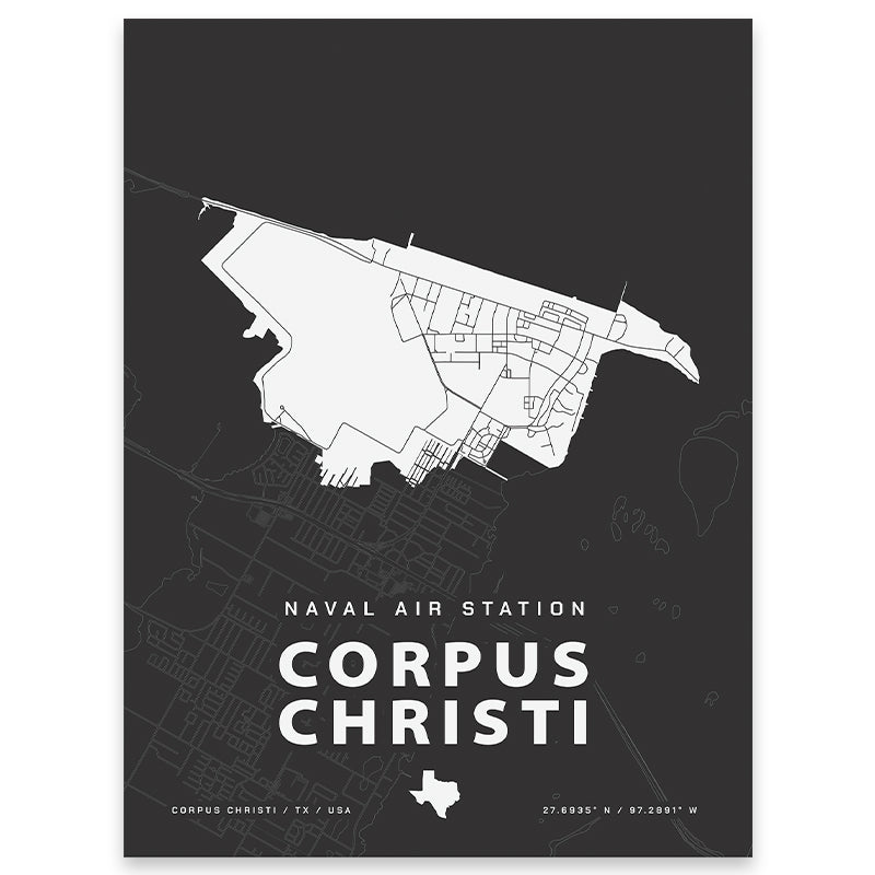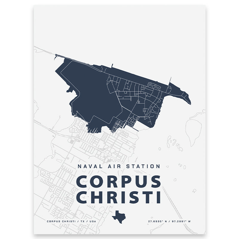Created by a military wife to commemorate each military family's journey, this map of NAS Corpus Christi is a meaningful way to add art to your home. Collect every place you've been stationed for an effortless gallery wall that tells your story.