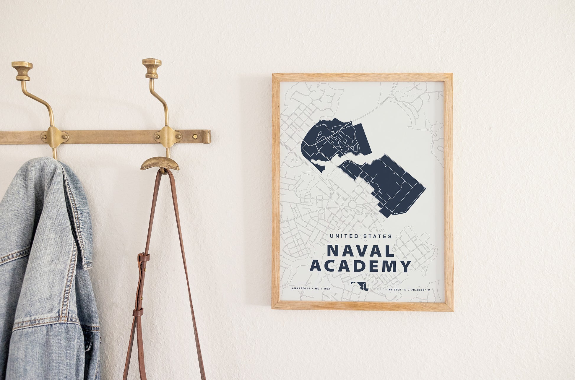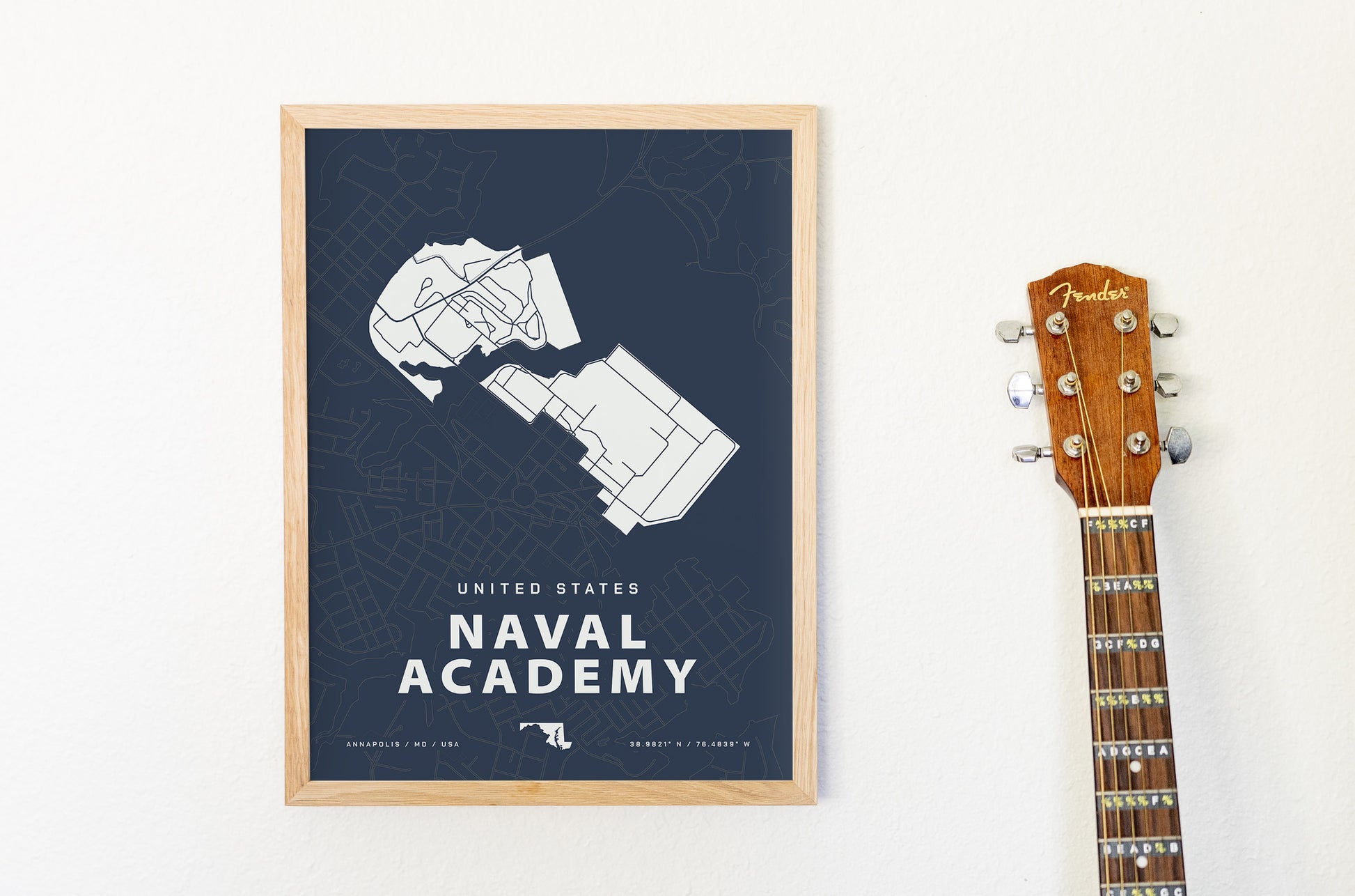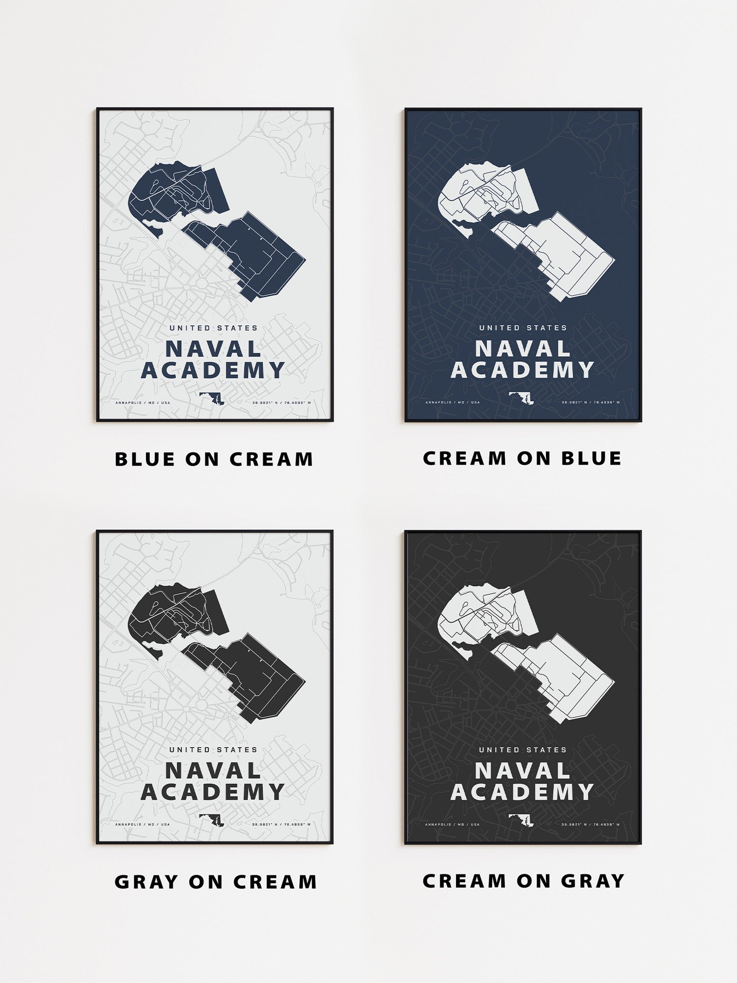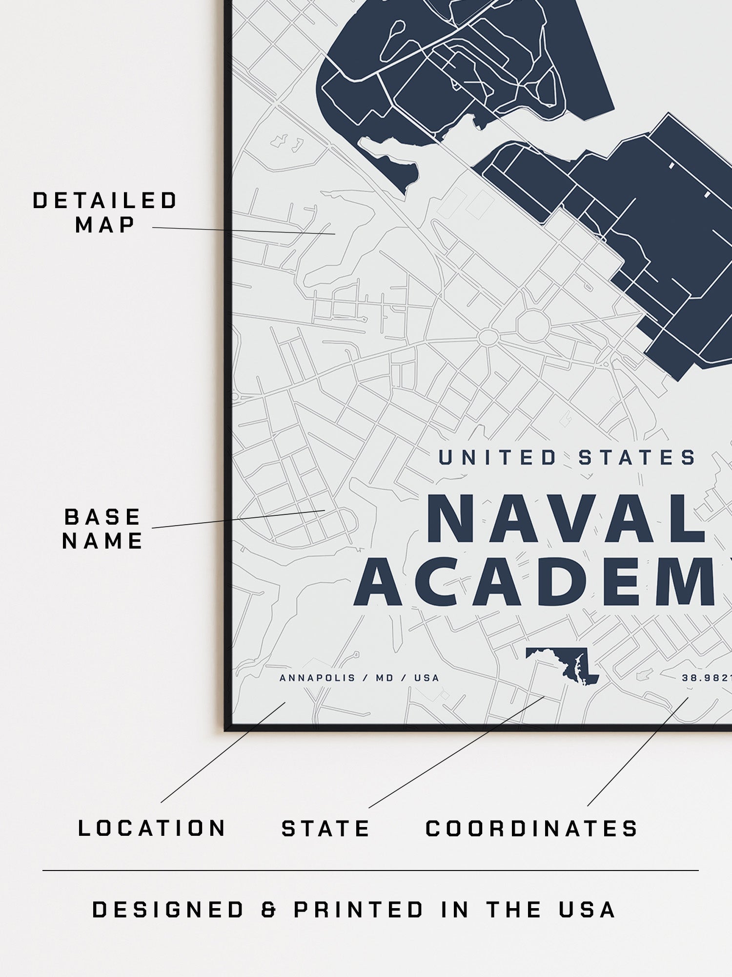 Created by a military wife to commemorate each military family's journey, this map of the Naval Academy is a meaningful way to add art to your home. Collect every place you've been stationed for an effortless gallery wall that tells your story.