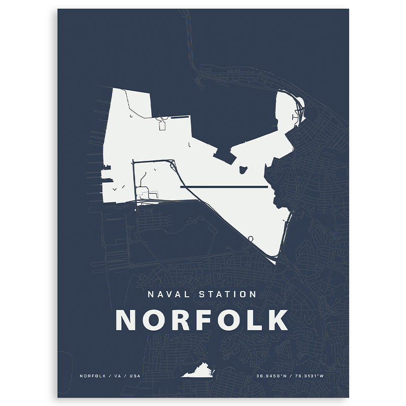 Created by a military wife to commemorate each military family's journey, this map of NAVSTA Norfolk is a meaningful way to add art to your home. Collect every place you've been stationed for an effortless gallery wall that tells your story.
